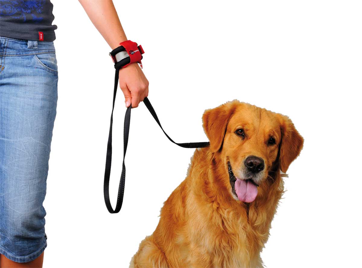 This innovative leash attaches to the wrist and, with its integrated roll-up system, is the most convenient way to keep the dog under control during activities.